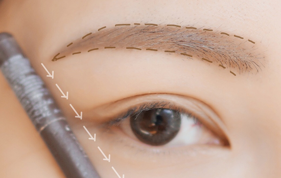 第一步:用眉笔测量好眉毛的长度,用眉笔填充眉毛空隙,注意眉头偏粗,眉尾细,画出自然的眉形即可。上色的时候注意不要下手太重,以免变成蜡笔小新哦。