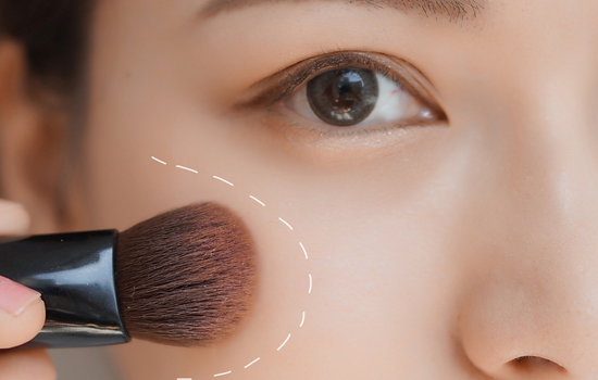 第一步:将腮红以打圈的方式轻扫于颧骨标注区域,注意少量多次。这里使用的产品是maquillage PK200。