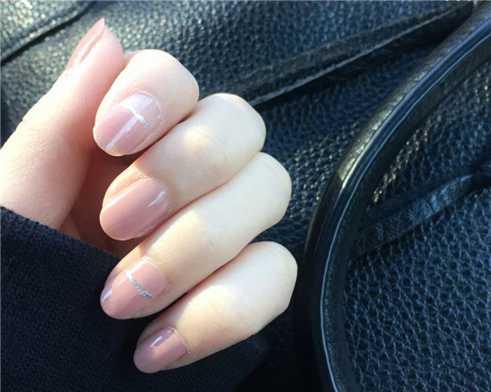 裸粉色加银色线条,非常简单,但是看上去却很精致,是非常舒服的一款美甲。
