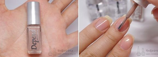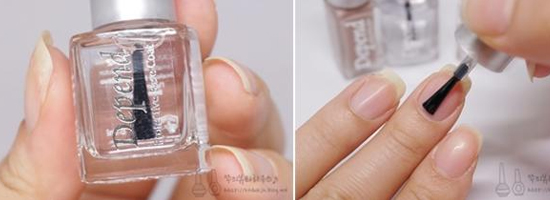 STEP1:美甲前先涂上透明底油吹干。