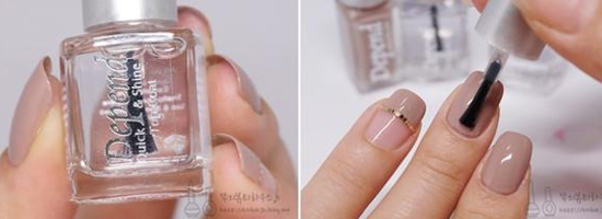 STEP6:等甲油吹干后,再涂上透明顶油就可以了。